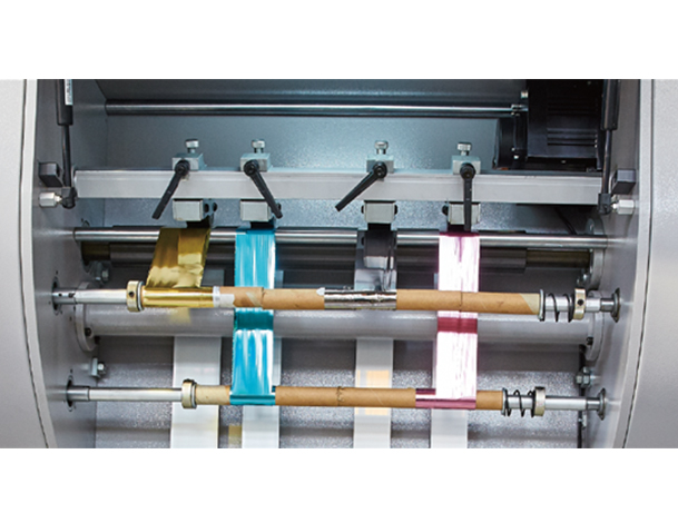 -下挂箔架可拉出机外,并采用同SEF较大的压金箔胶轮,使装穿金箔及调整压箔更方便;